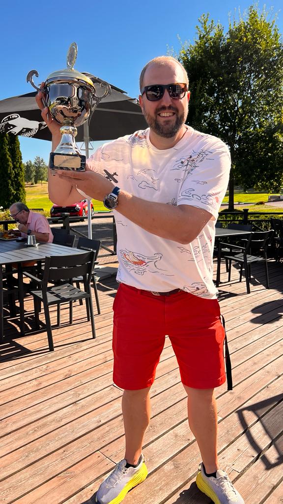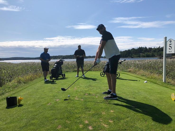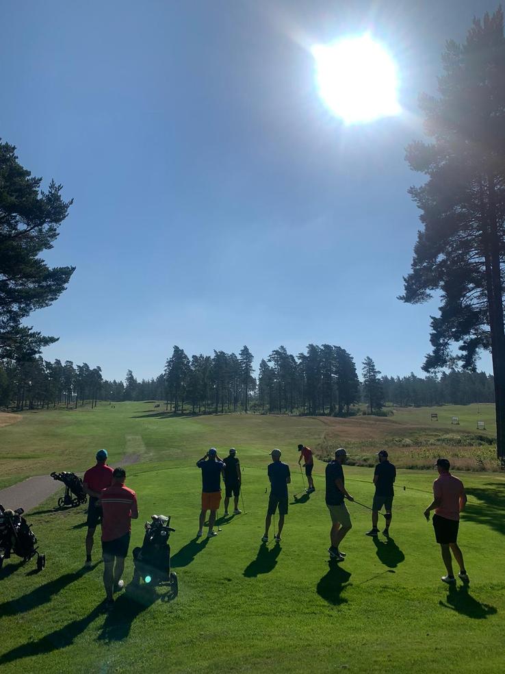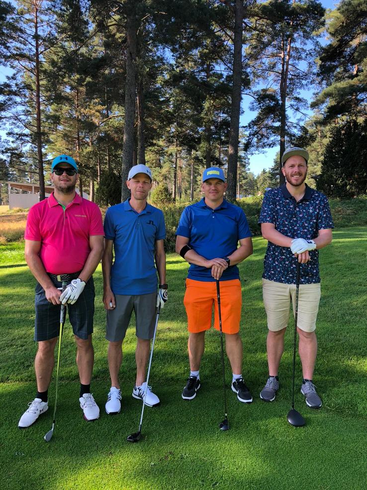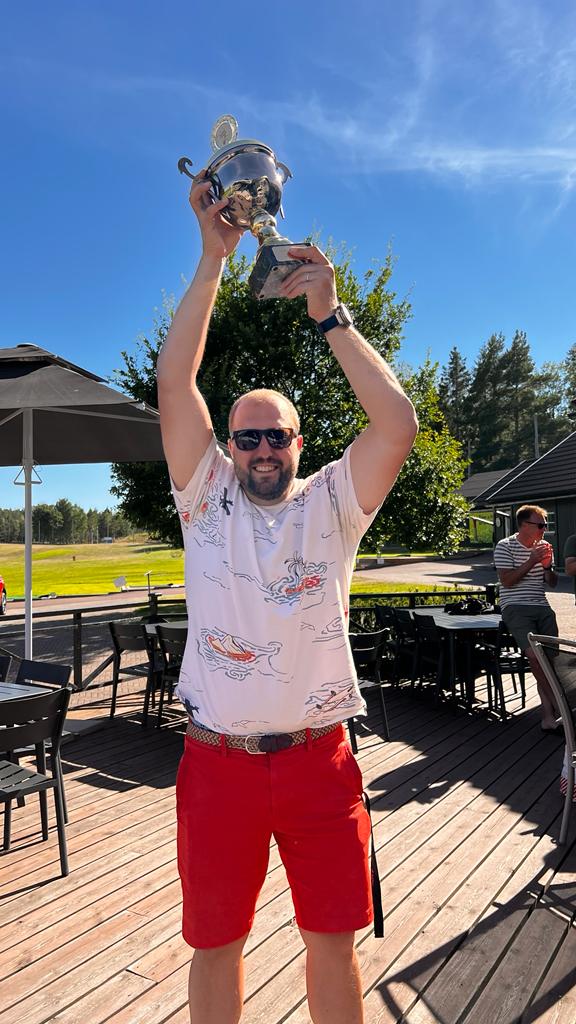 Det var dags för finaldag och vi checkade ut från boendet och tog bilarna till andra sidan udden till Hammarö GK. Vädret höll i sig även idag och helgen var nog nästan varmaste dagarna på hela sommaren. I ledarbollen gick David L, Markus R, Andreas E och Martin S. Det var en svängig runda men sista 7-8 hålen var det väldigt jämt mellan Erik från näst sista bollen, Martin S och Andreas. Andreas tappade på hål nr 17 och på sista hålet gjorde Erik en bogey som betydde 3 slag netto eftersom hålet gav honom 2 extraslag. En dålig förstaputt av Martin som behövde paret resulterade i en treputt och Erik kunde även detta år lyfta bucklan med ett slags marginal.