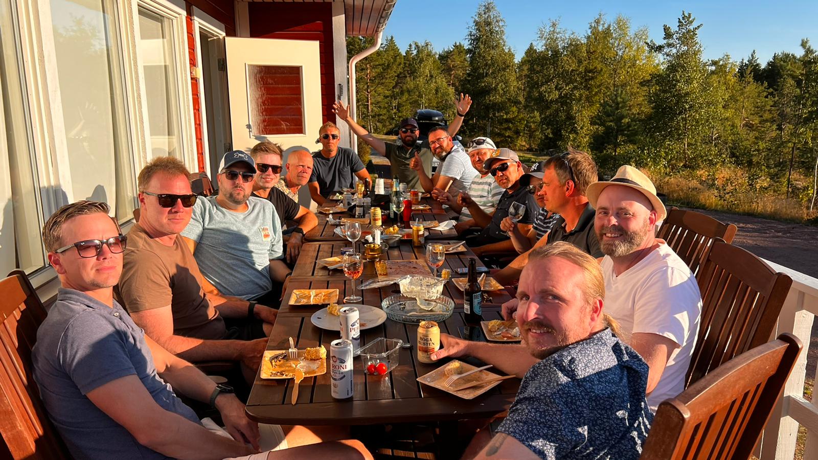 Middagen fixades av förlorarlaget från fredagen och bestod av grillbuffé med potatissallad. Uppskattat om vi tolkar åtgången på maten rätt! Efter detta åter häng vid “partystugan” och varierad nattningstid för deltagarna.... Några var tvungna att ladda batterier tidigt och nervösbajsa inför avgörandet tydligen, några andra njöt av sällskap, stjärnfall och den vackra natthimlen!