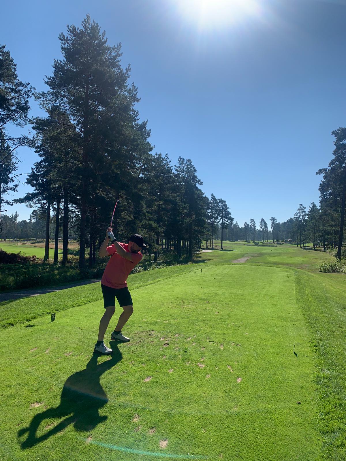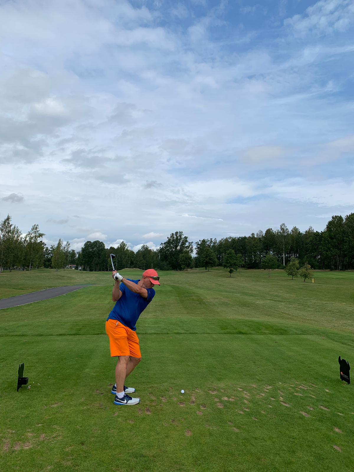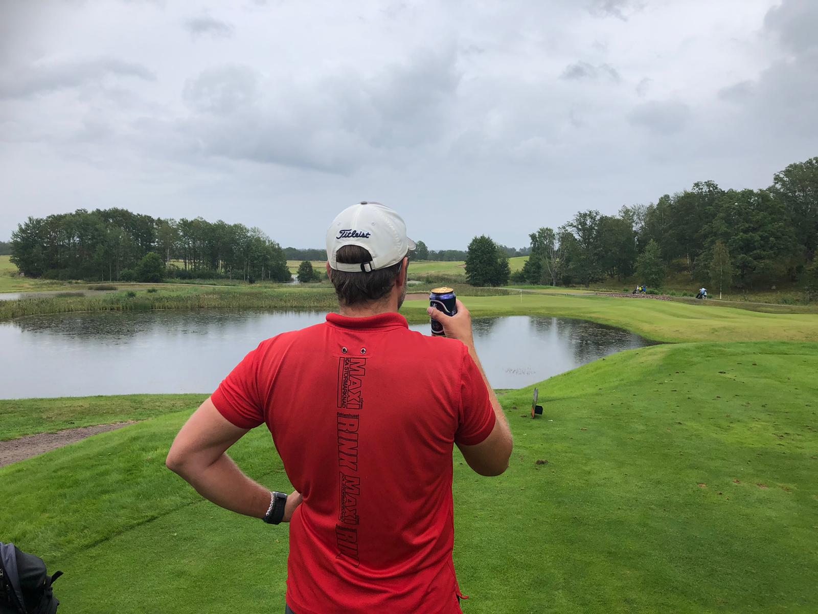 Ännu en dag där kropp och knopp skulle stå ut med värmebölja i kombination med öldrickande. Åter skulle kungsbanan betvingas och nu hade vi alla tron på att det skulle gå lättare. Tji fick vi på totalen! 10,3 slag sämre än vårt hcp den här gången och alltså ÄNNU sämre än första dagen! De två stabila ledarna (Solid och Johan) efter två rundor bjöd plötsligt in startfältet i matchen igen genom att darra lite i stabiliteten. Detta medan Willer, Isaksson och Richter presterade på en bättre nivå gjorde att tävlingen i allra högsta grad levde inför söndagens spel! Bäst på rundan var Richter på +2, Perra ett slag sämre och Rikard tillsammans med redan nämnda Willer och Isaksson ett slag ytterligare bakom.