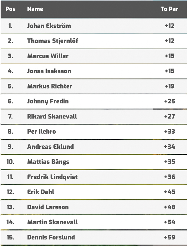 Moving day gjorde att scoren såg ut så här inför finalrundan i de två sista bollar Martin S (E) Andreas E (+4) Martin B (+5) Thomas S (+6) Markus R (+8) Mattias B (+10) Johnny F (+12) Erik D (+15)