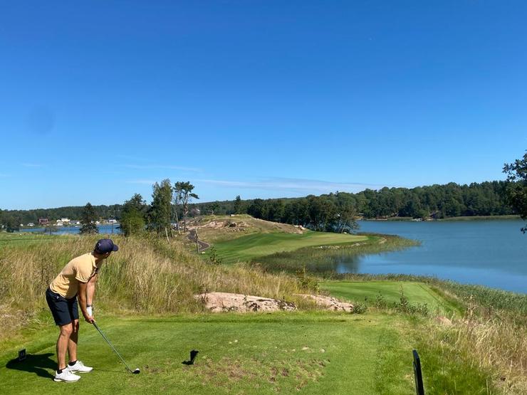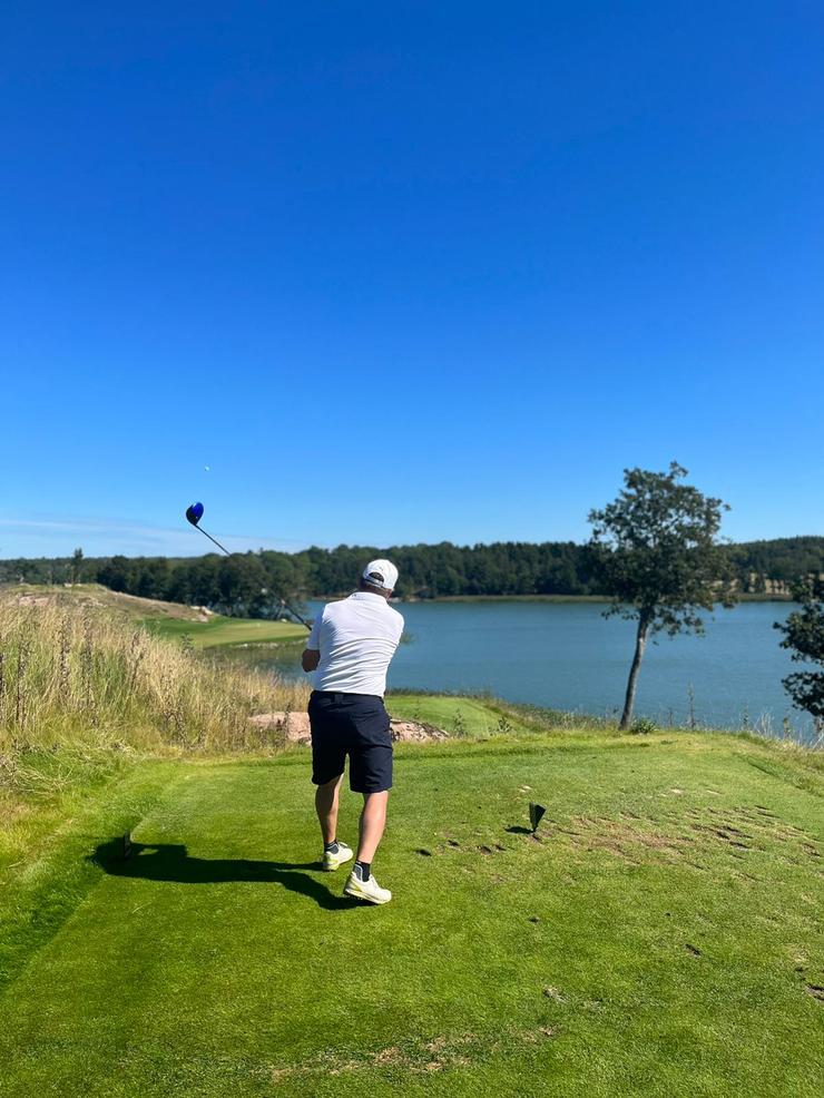 Slottsbanan innehåller utmanande hål, ljuvliga vyer och mycket vatten men också idag är scorerna rejält varierade. Ändå något bättre spel än under första dagen och fältet landade på +6,8 mot hcp i snitt den här dagen. Bäst hanterades dagen av nykomlingen Jonas som gick –1. Johan i fortsatt totaltopp efter stabila +1, ett resultat som delades med Thomas och Perra.